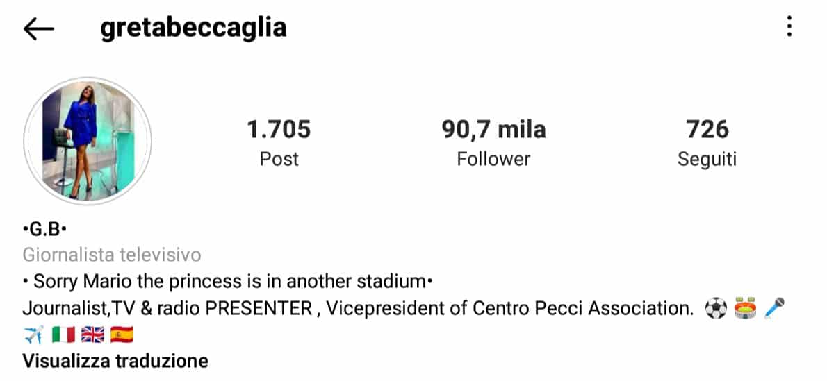 I seguaci su Instagram di Greta Beccaglia prima del vergognoso episodio
