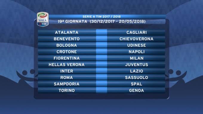 1° Giornata: Inter-Fiorentina (20 agosto, 6 gennaio)