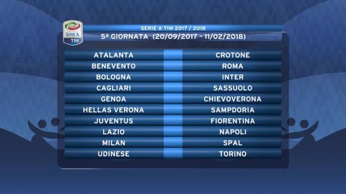 5° Giornata: Juventus-Fiorentina (20 settembre, 11 febbraio)