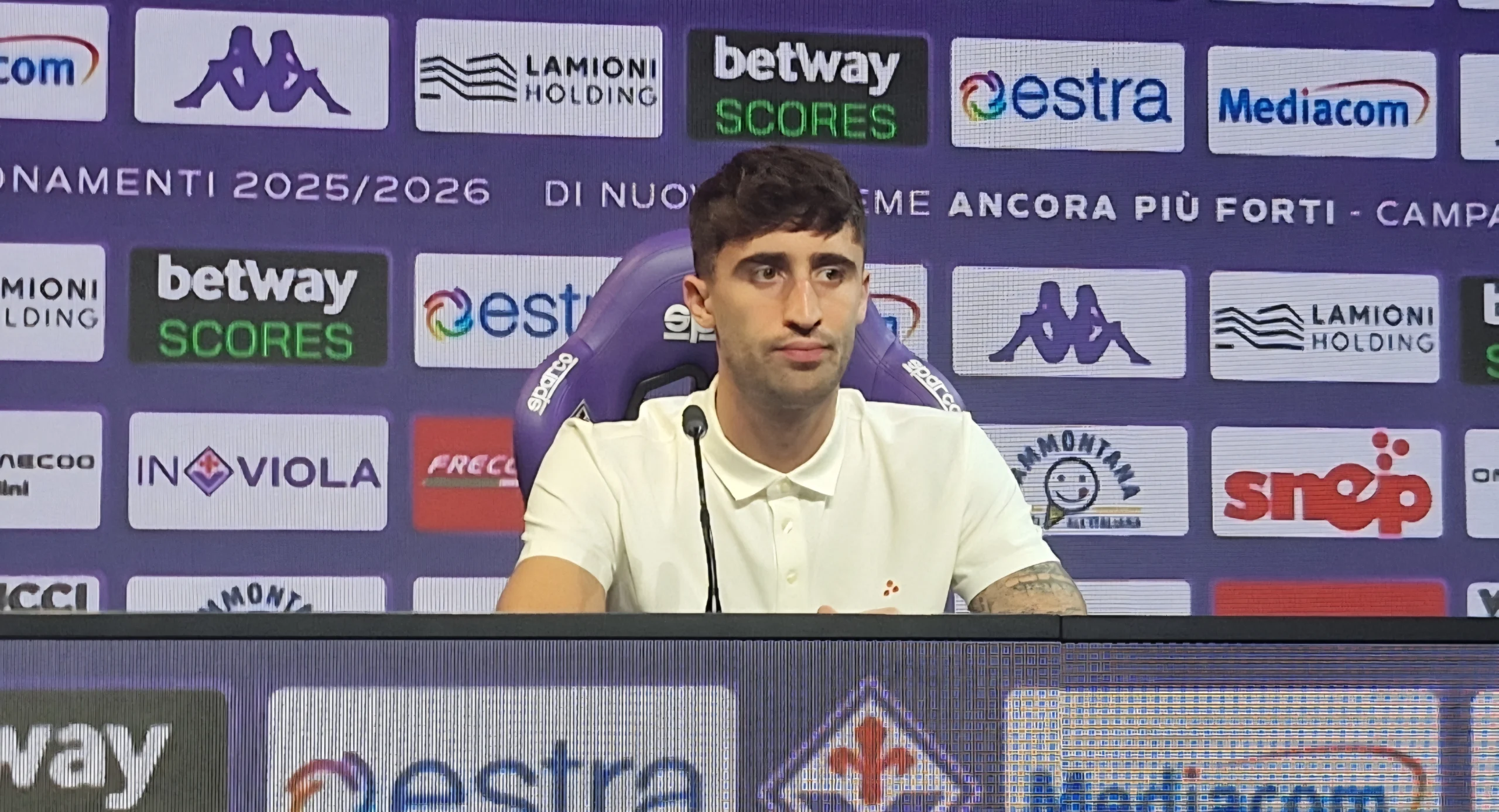 “Per me è motivo di orgoglio e vanto essere alla Fiorentina, il mio babbo aveva i brividi quando ho firmato, fa solo piacere. Pioli ci fa essere compatti, cerchiamo di fare tutto quello che ci chiede il mister. Io i tappi dalle orecchie non li ho mai tolti, me li ha regalati il mio procuratore quando ho esordito, non li voglio togliere, vengo da 2 retrocessioni, lo so bene ma qui mi sento a casa e ci sono tutti i presupposti per fare bene.