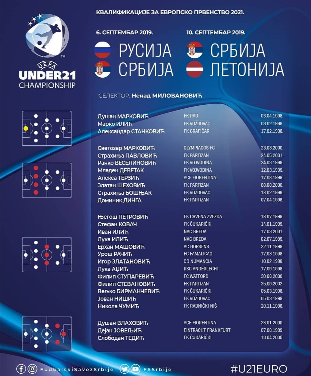 L’attaccante della Fiorentina Dusan Vlahovic e il terzino sinistro Aleksa Terzic sono stati convocati dalla Nazionale Serbia Under 21 per le gare di qualificazione agli Europei. La Serbia sfiderà la Russia il 6 settembre e il 10 la Lettonia.