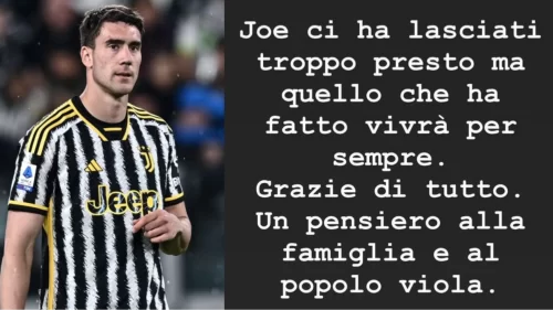 Vlahovic scrive: “Joe ci ha lasciato troppo presto ma quello che ha fatto vivrà per sempre”